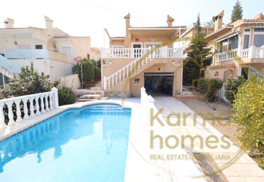 For Sale: Semi-detached villa with private solarium and plot in a gated community with pool in La Campana, Orihuela Costa
