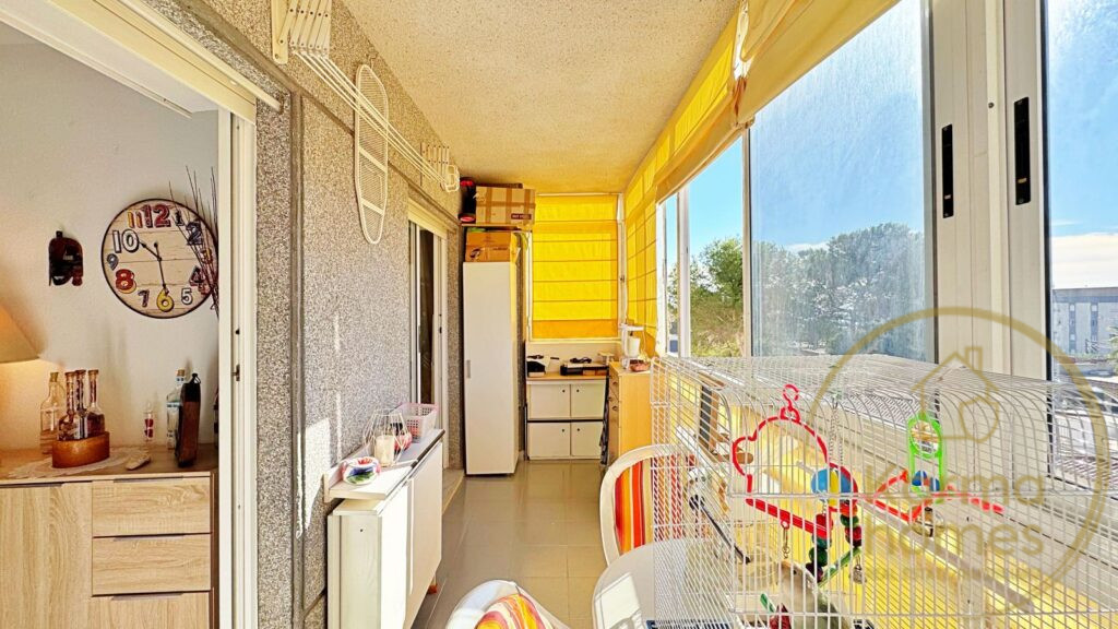 Situated on the fourth floor of a well-maintained building with lift access, the apartment benefits from a south-facing orientation and an enclosed terrace offering beautiful sea views — perfect for relaxing year-round.