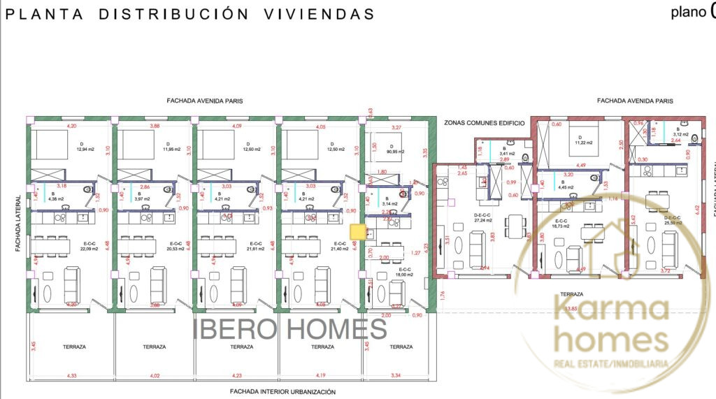 We will divide the property into 8 apartments of approximately 42 m² each, with direct access to the communal areas and swimming pool. In the Los Frutales area, the average price for new construction or complete renovations of this type of property is around €2,620/m².